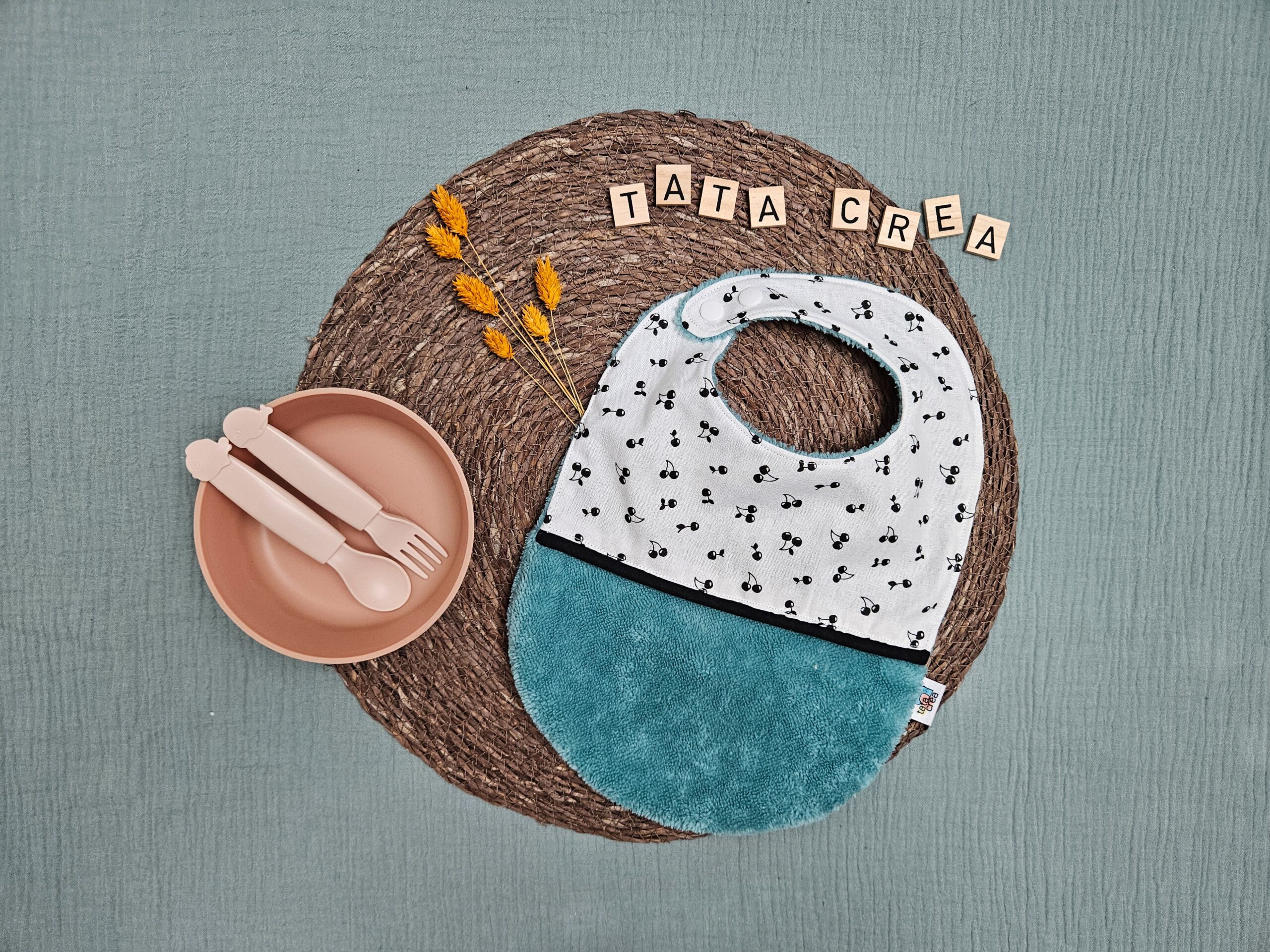 Je réalise entièrement chaque bavoir à la main dans mon atelier, avec soin et minutie. Je choisis les tissus pour leur qualité, leur douceur et leur solidité. J’associe les matières, les motifs et les couleurs pour refléter la douceur de l’enfance et le lien affectif unique que vous souhaitez célébrer.