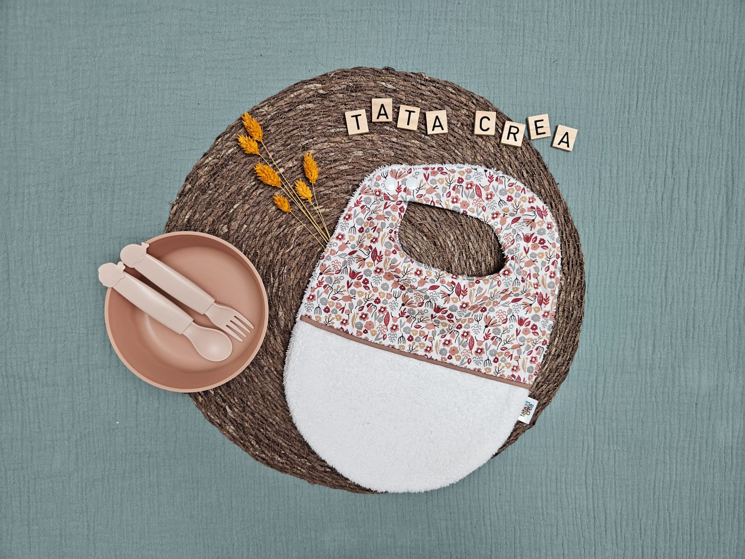 Je réalise entièrement chaque bavoir à la main dans mon atelier, avec soin et minutie. Je choisis les tissus pour leur qualité, leur douceur et leur solidité. J’associe les matières, les motifs et les couleurs pour refléter la douceur de l’enfance et le lien affectif unique que vous souhaitez célébrer.