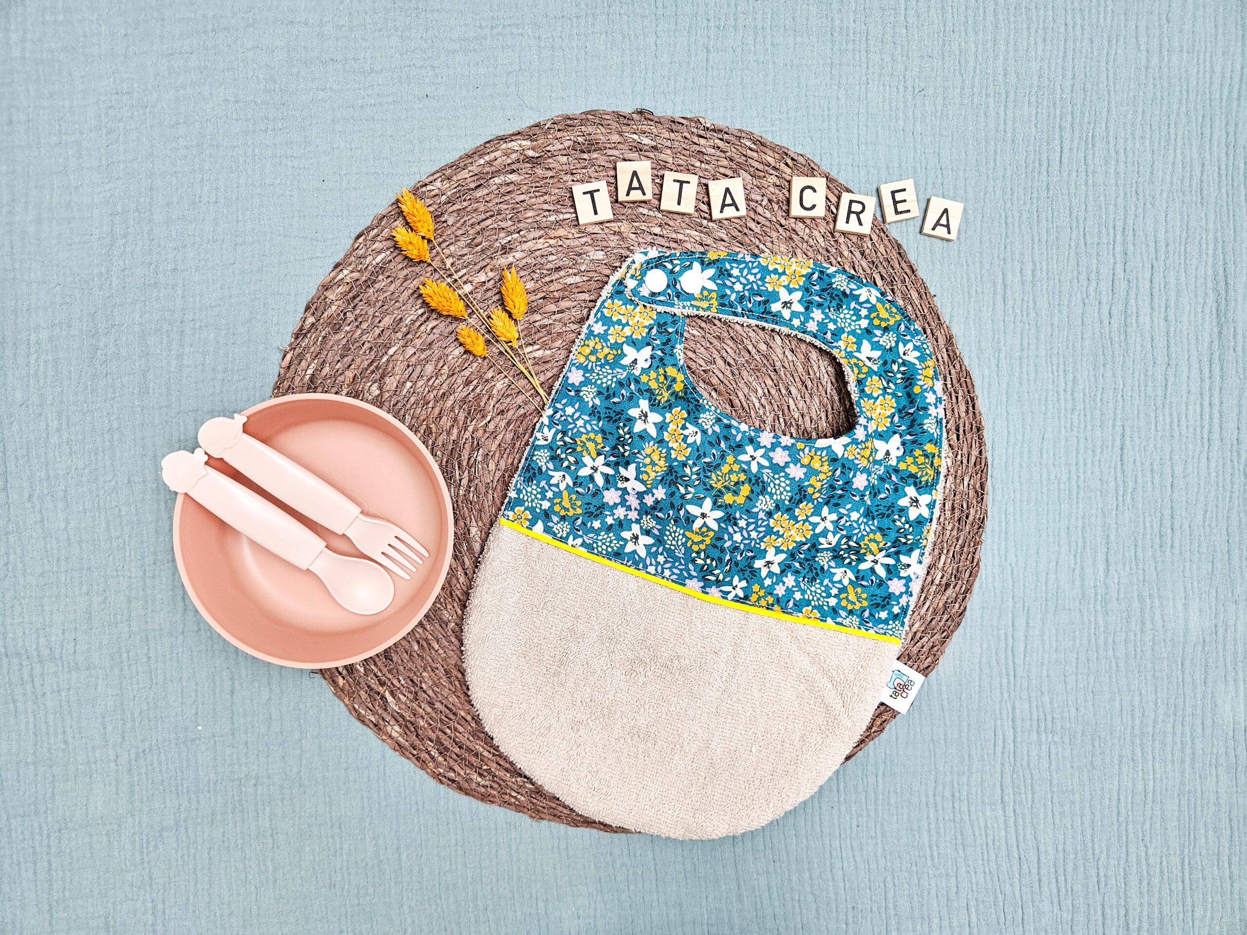 Je réalise entièrement chaque bavoir à la main dans mon atelier, avec soin et minutie. Je choisis les tissus pour leur qualité, leur douceur et leur solidité. J’associe les matières, les motifs et les couleurs pour refléter la douceur de l’enfance et le lien affectif unique que vous souhaitez célébrer.