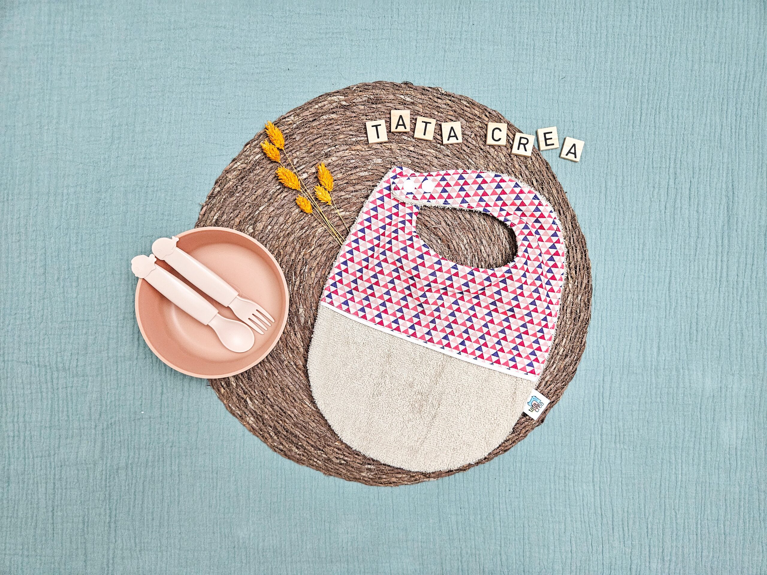 Je réalise entièrement chaque bavoir à la main dans mon atelier, avec soin et minutie. Je choisis les tissus pour leur qualité, leur douceur et leur solidité. J’associe les matières, les motifs et les couleurs pour refléter la douceur de l’enfance et le lien affectif unique que vous souhaitez célébrer.