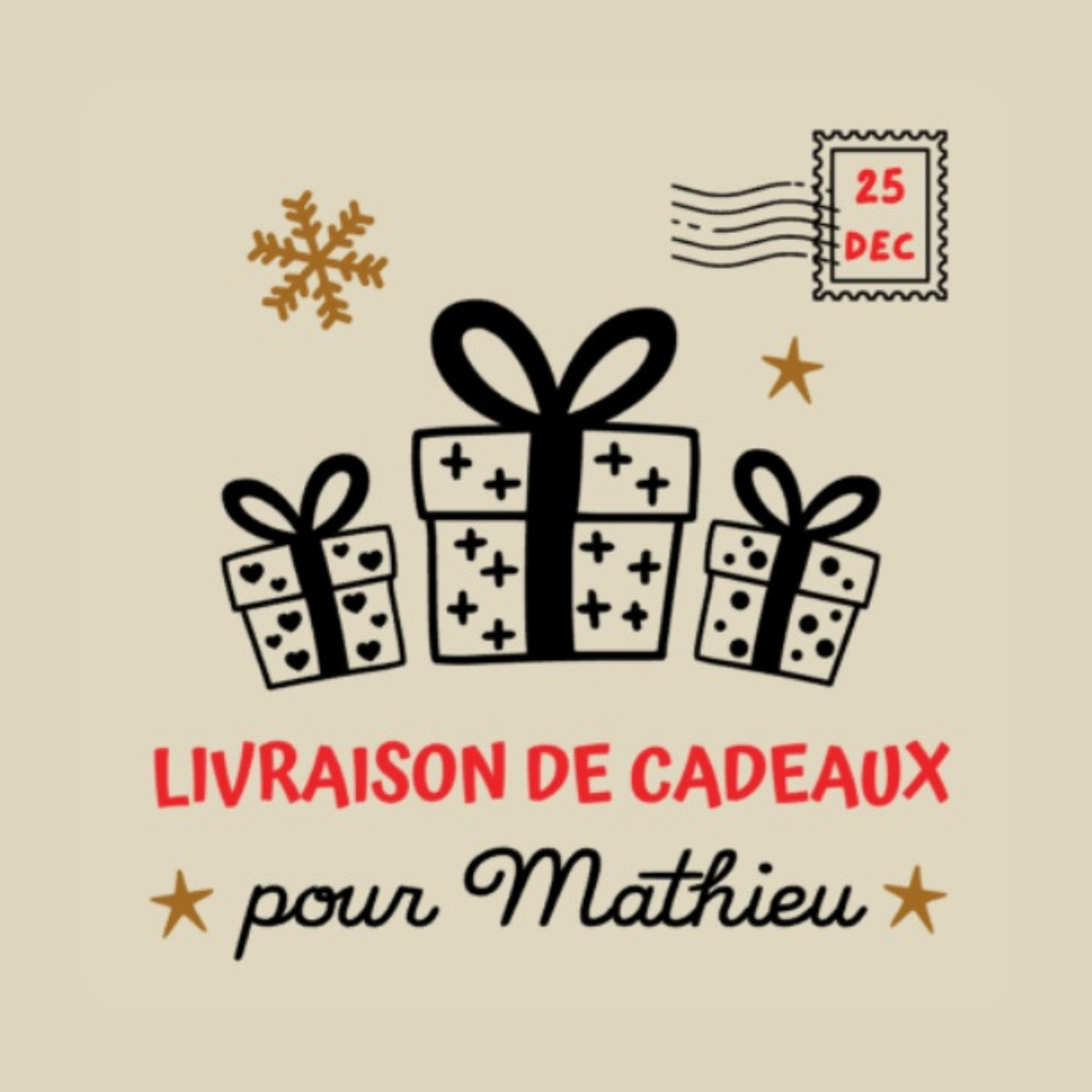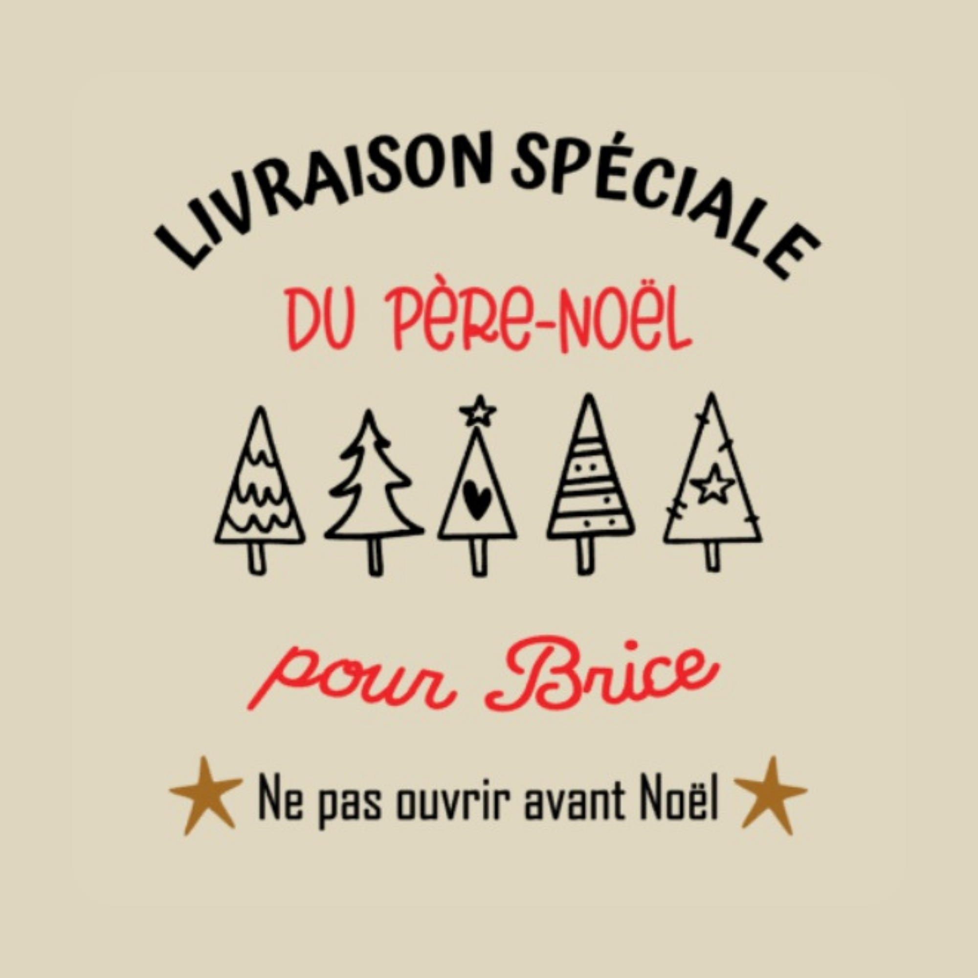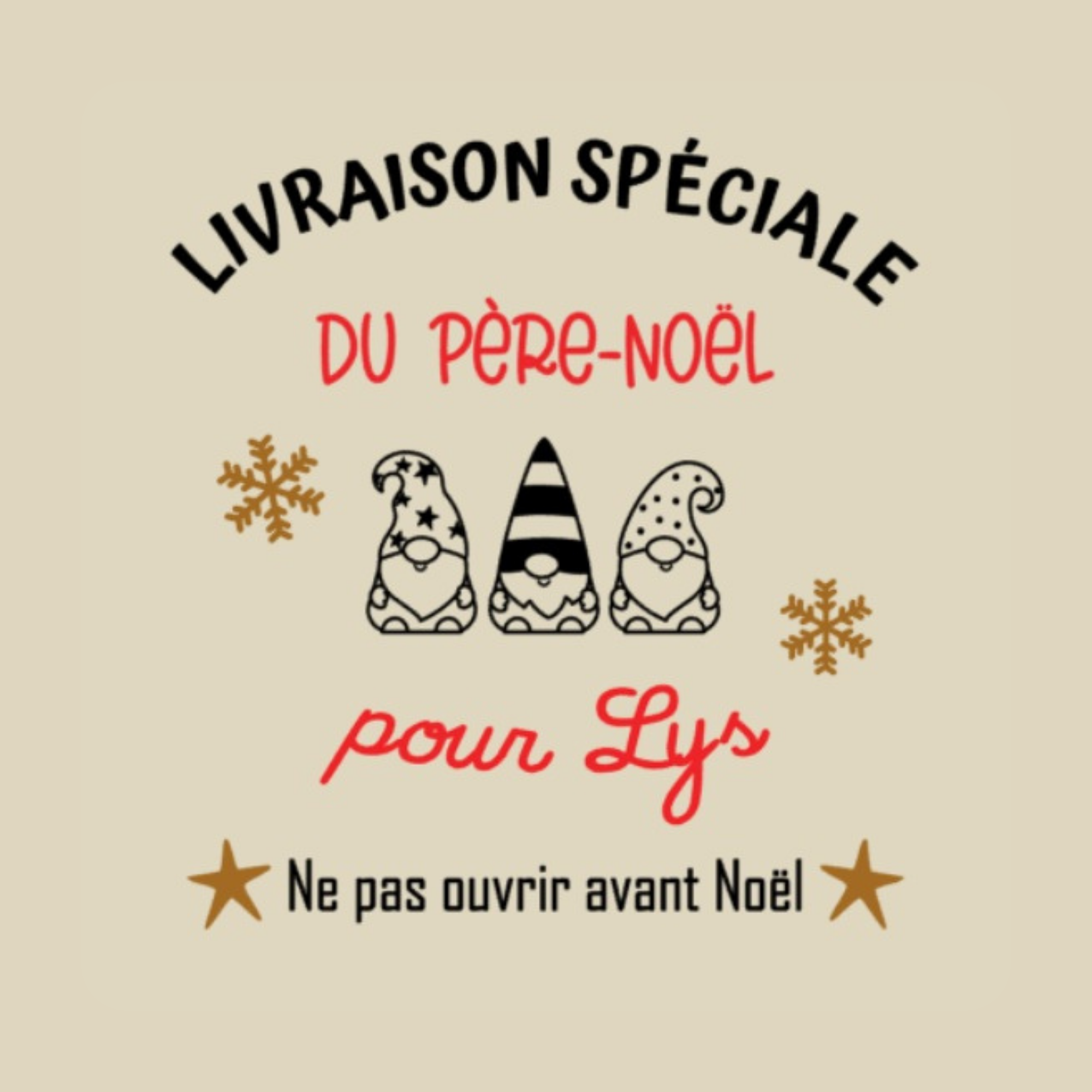 Votre hotte de Noël devient unique grâce à l’ajout du prénom de l’enfant, intégré à l’un des six visuels proposés.