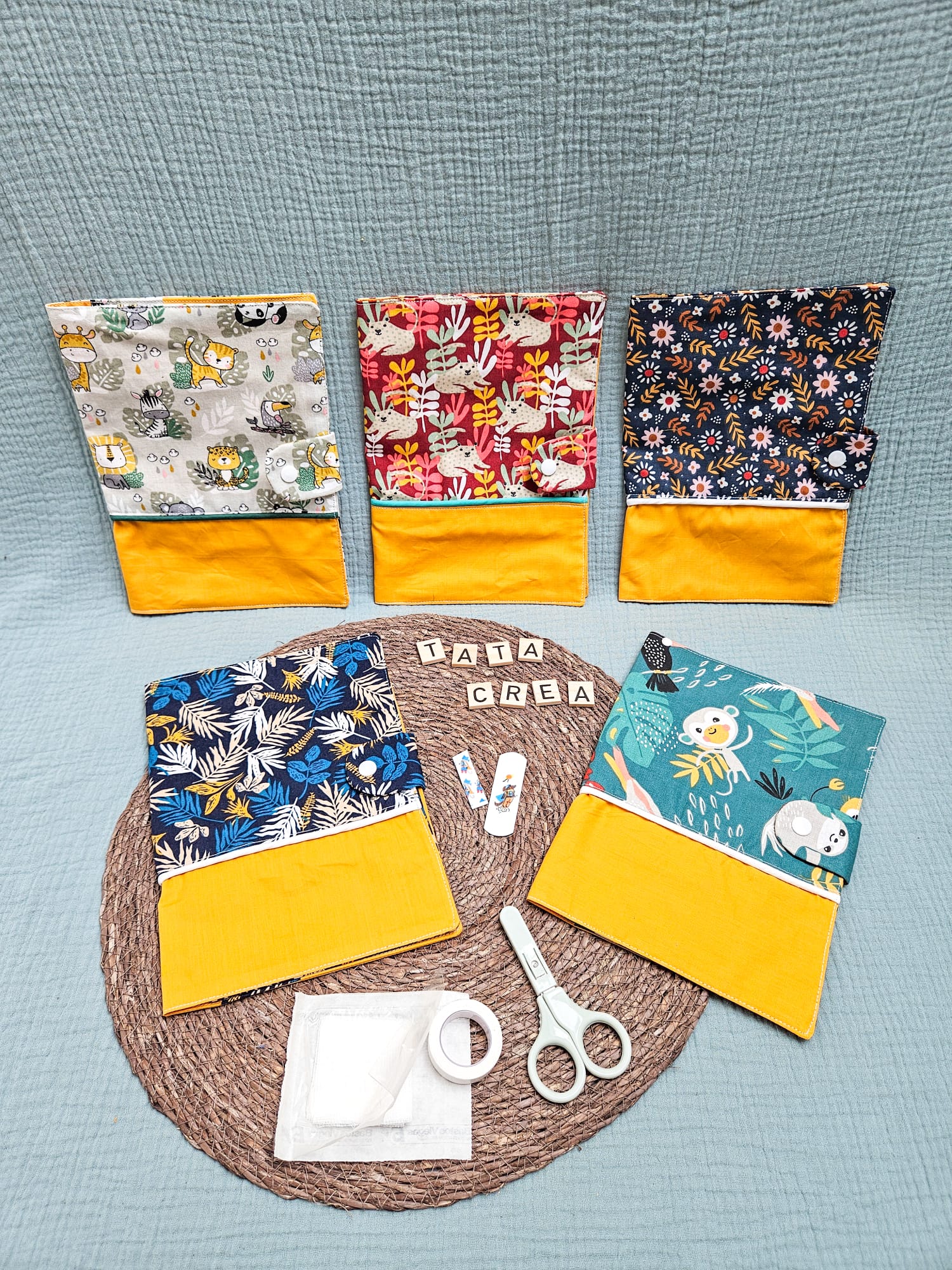Je réalise entièrement à la main chaque protège-carnet de santé dans mon atelier, avec soin et minutie. Je choisis les tissus pour leur qualité, leur douceur et leur solidité. J’associe les matières, les motifs et les couleurs pour refléter la douceur de l’enfance et le lien affectif unique que vous souhaitez célébrer.