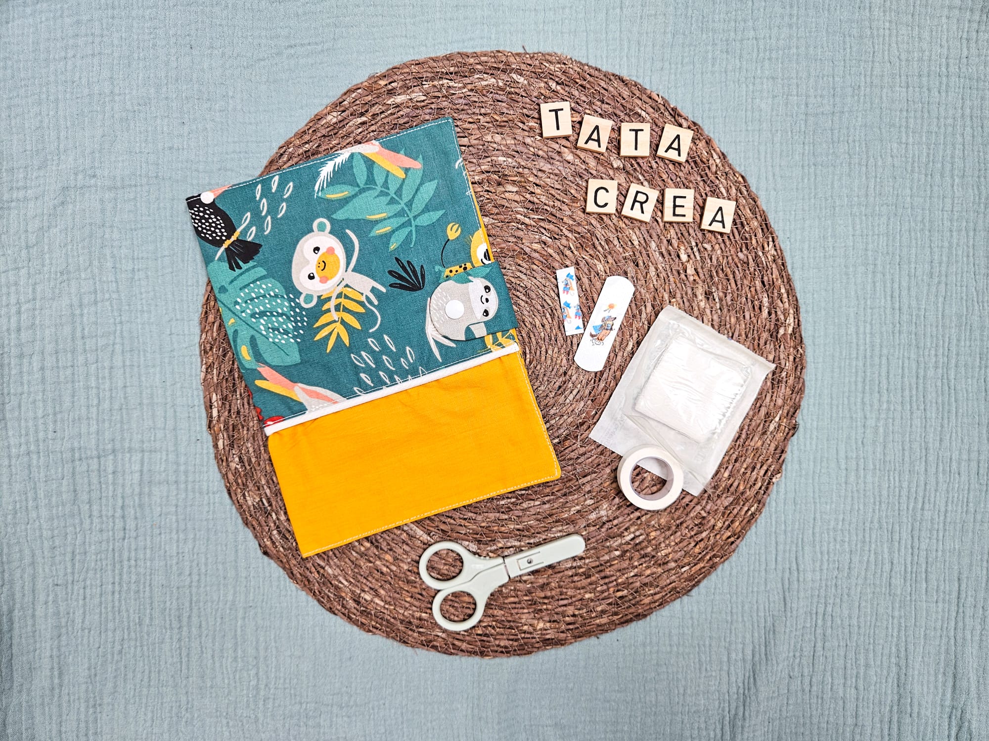 J’ai pensé le protège-carnet de santé personnalisé Tata créa pour accompagner l’enfant dès sa naissance, tout au long de son suivi médical. Il permet donc de garder précieusement ce document essentiel tout en le protégeant avec style et tendresse. C’est un indispensable du quotidien.