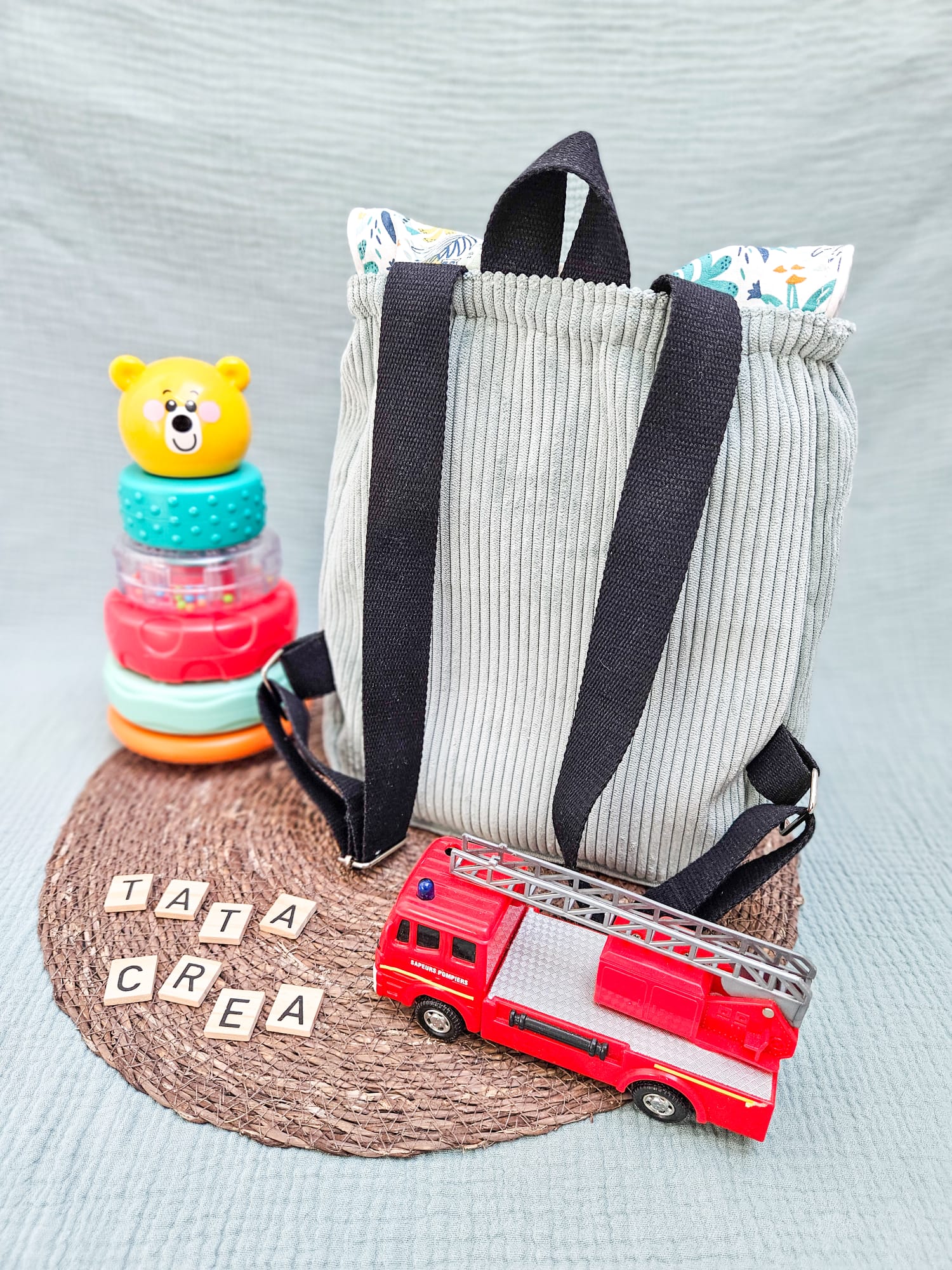 Ce petit sac à dos accompagne les tout-petits dans toutes leurs aventures, que ce soit chez la nounou, à la crèche ou lors de leurs premières années d’école. J’ai choisis ce format pour contenir un cahier de liaison (souvent demandé en maternelle), une tenue de rechange et le doudou préféré de votre loulou (ou même quelques petits trésors). Léger et confortable, il se pose facilement sur le dos et suit l’enfant dans ses journées bien remplies.